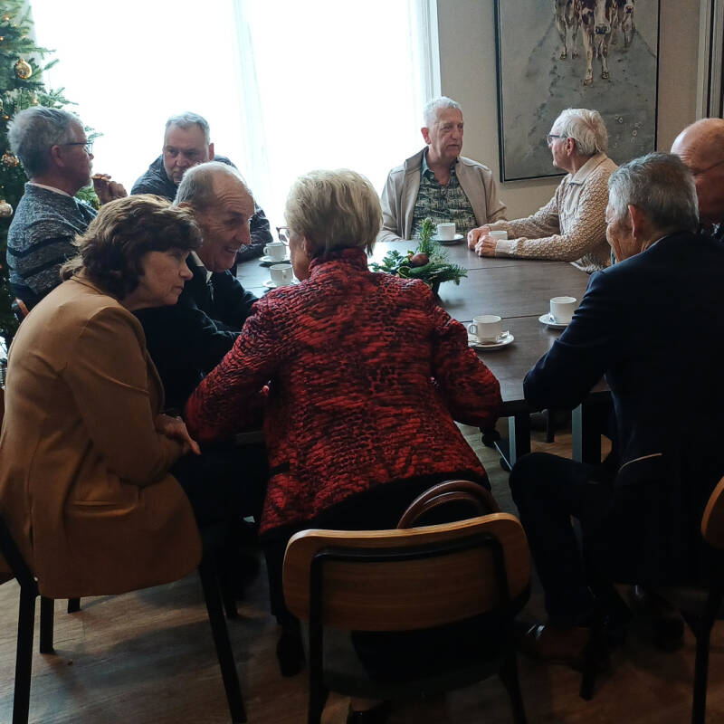 Iets over 12:00 uur heette voorzitter Gerrit Bosch iedereen van harte welkom, waaronder burgemeester Tanja Haaseloop-Amsing en haar partner. In zijn openingswoord lichtte hij kort toe waarom voor het MFC Hart van Oosterwolde was gekozen. Na enkele praktische mededelingen van penningmeester Peter Jacobs werd het buffet officieel geopend. Rond 12:30 arriveerde nog een late gast, die zich in de locatie had vergist maar alsnog kon aanschuiven. Het werd een gezellige bijeenkomst, waar ook oud-collega’s elkaar na jaren weer ontmoetten en herinneringen konden ophalen.